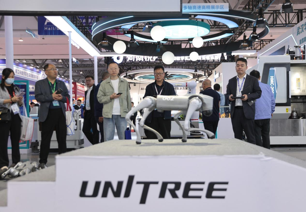 第63届高等教育博览会现场,一家参展商正在演示机器狗。