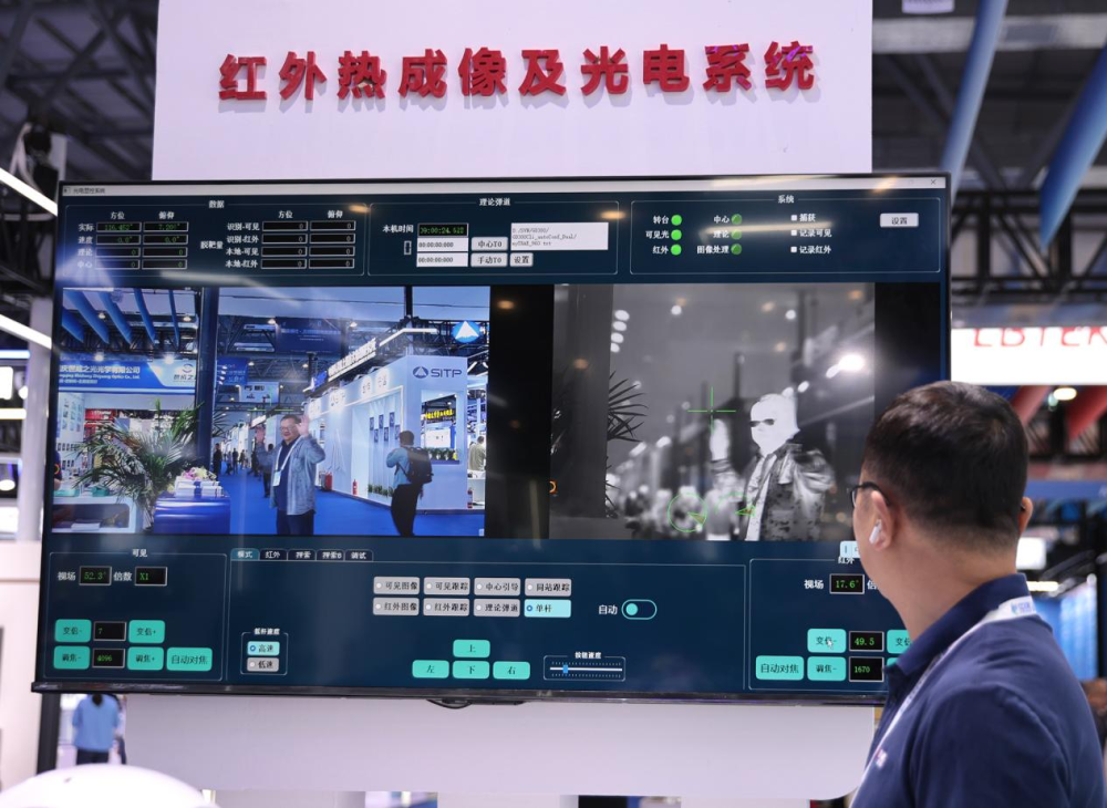 在2025长春光博会现场一位参展者正在观看“红外热成像及光电系统”的展示。