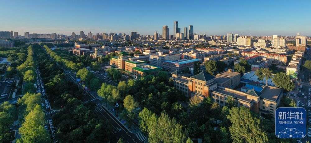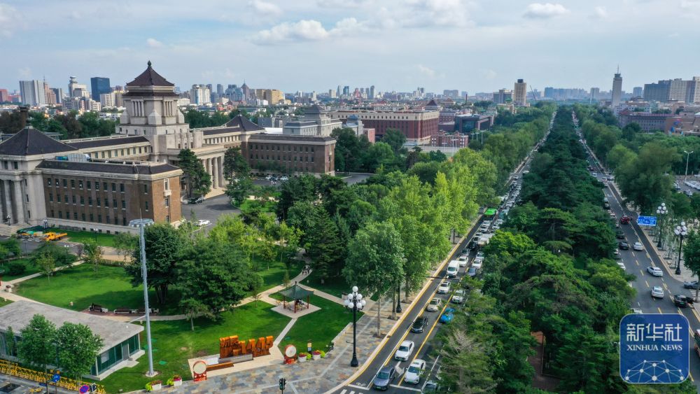 7月30日拍摄的长春历史文化博物馆和新民大街(无人机全景拼接照片)。