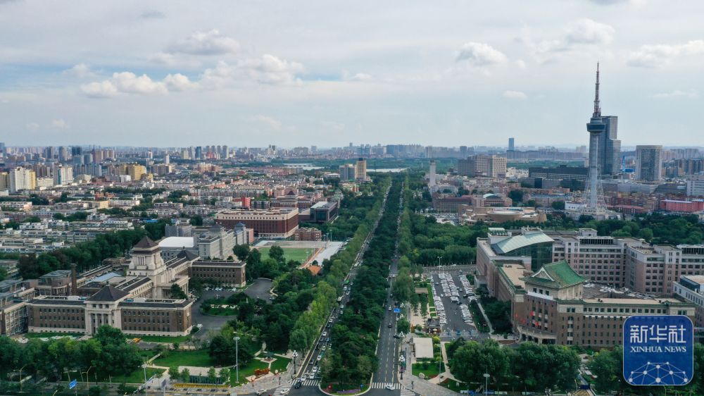 7月28日拍摄的长春新民大街(无人机全景拼接照片)。