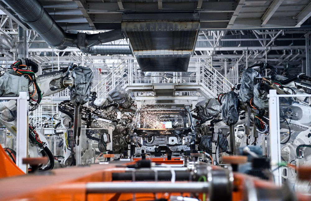 走进一汽红旗繁荣工厂焊装车间,700多台焊接机器人挥舞手臂繁忙工作,展示着“黑灯工厂”的机械魅力。在总装车间,游客随处可见集成机器人按行程轨迹工作,超声波检查设备正对产品进行精准测量,安装座椅、拧螺丝、涂胶等不少传统工人工位已被“一丝不苟”的机器人取代,智能制造、数字工厂的魅力尽皆展现。