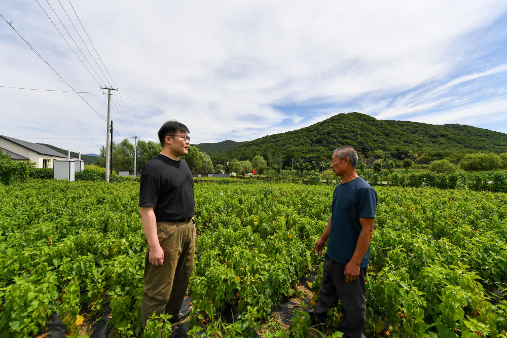 2023年,在吉林省磐石市官马新村,马铖明和同事们因地制宜,推广种植红菇娘、矮棵向日葵等庭院经济项目,帮助村民增收。