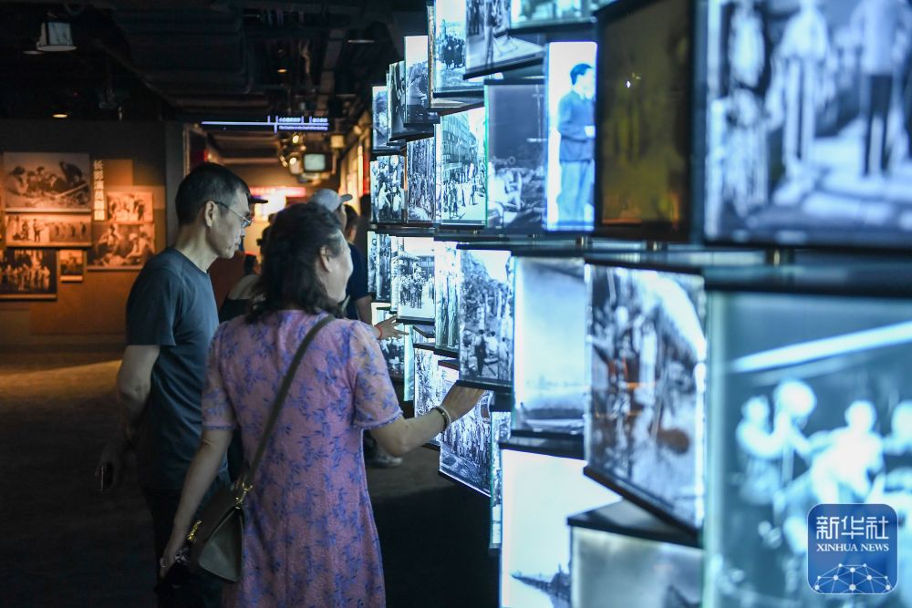 ↑ 8月7日,游客在长影旧址博物馆参观。
