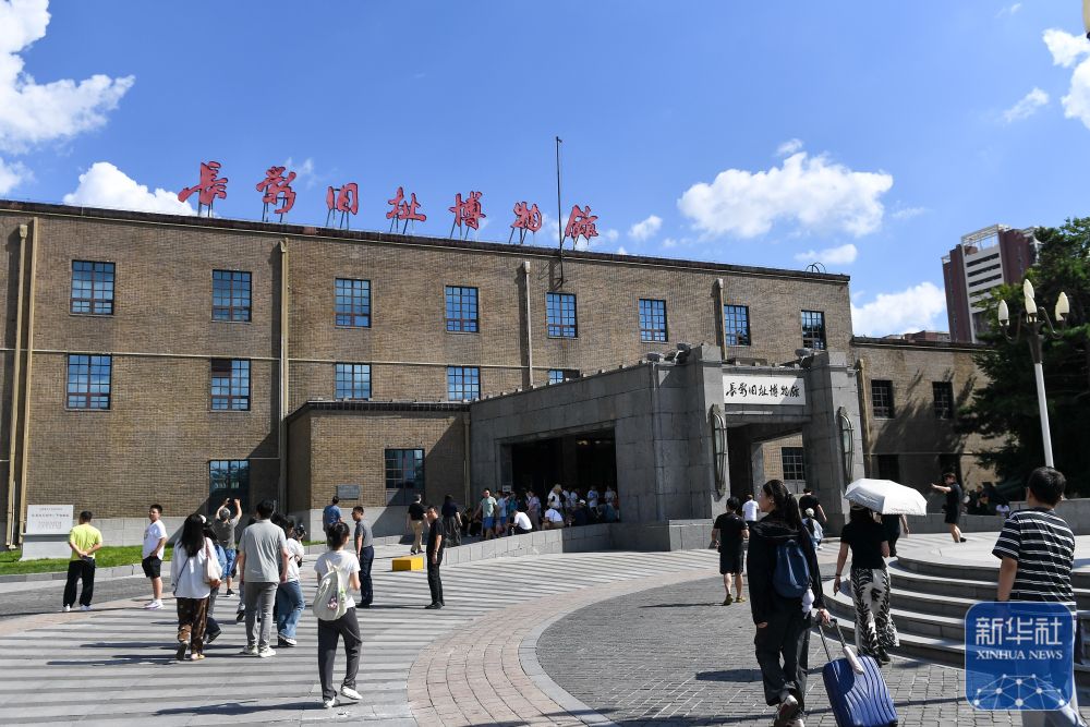 ↑ 8月7日,游客走进长影旧址博物馆参观。
